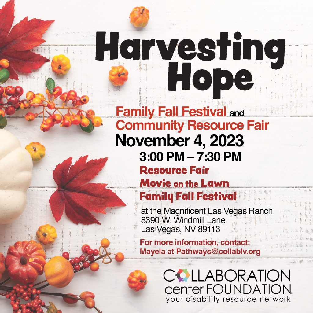 Collaboration Center Foundation is excited to announce its 2nd annual Harvesting Hope Fall Festival & Resource Fair. Families, providers, and other community members are invited to Collaboration Center Foundation on...